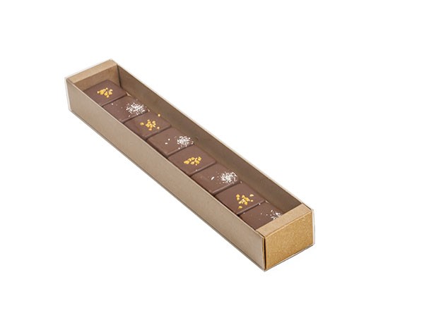 Caja con falso fondo extraíble 10 mm, funda transparente para aprox. 75 g de bombones o marrons glacés