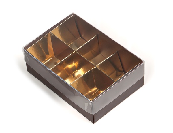 Caja marrón c/sep. oro 6 macarons Ø30mm/cj.36u
