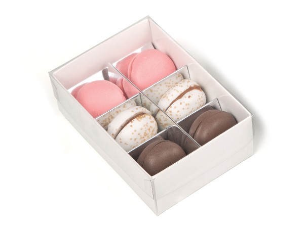 Caja blanca c/sep. plata 6 macarons Ø30mm/cj36u