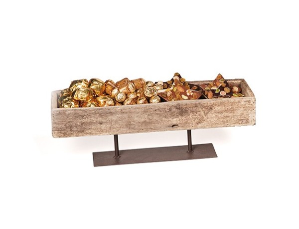 Contenedor de madera con pie de metal