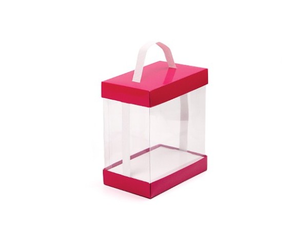 Con asa textil y fondo reversible para molde o huevo - transparente servido plano, fondo y tapa servidos montado. Caja de acabado elegante gracias a la cinta textil, aporta visibilidad de 360º a sus composiciones.