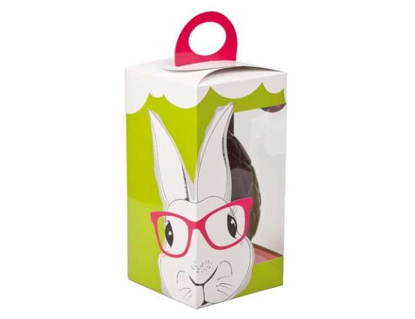 Caja con asa y ventana para molde o huevo vertical, servido sin zócalo