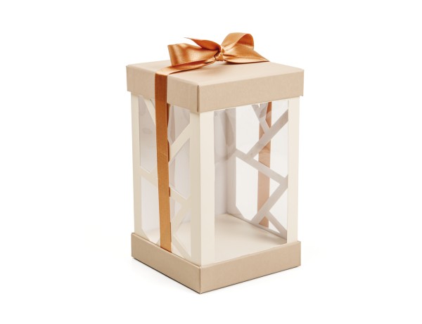 Caja con tapa y base rígida. Nueva ventana con biolaminación. ideal para árboles de Navidad u otras figuras