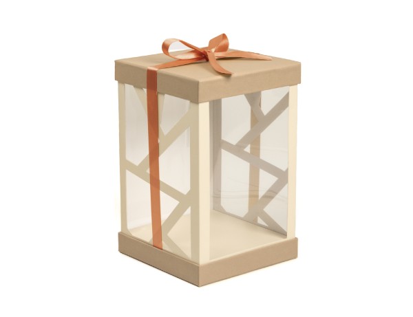 Caja con tapa y base rígida. Nueva ventana con biolaminación. ideal para árboles de Navidad u otras figuras