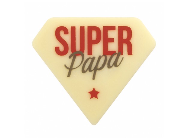 Decoración Super Papa en chocolate blanco con forma de diamante