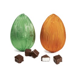 Chocolate con leche, rellenos de 32 g de cubitos de guimauve bañados en chocolate negro (6 pzas aprox)
