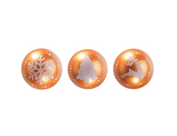 88 Boules CN Noël bronze 3 motifs assortis ø 3 cm