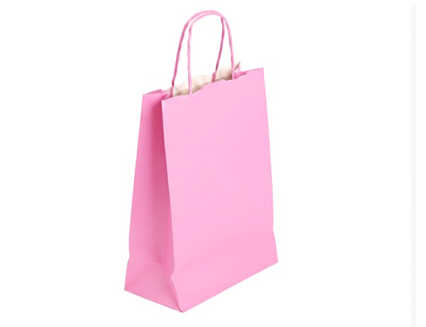 Bolsa papel asa retorcida Blanco. Color Rosa 540x130x450mm
